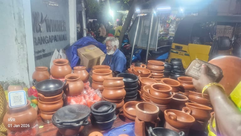 Along the queue route, temporary stalls and shops came up on both sides, offering a variety of items including flowers, fruits, pooja essentials, snacks, bangles, plants, and other festive purchases. This created a lively yet familiar temple-side market atmosphere, especially for those waiting in line for hours. Special thanks to our follower Mr.RV Ramanujam for the photos.