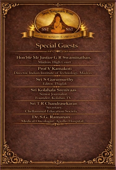 It is a great opportunity for Nanganallureans as they will get to witness a rare and unusual union of a spiritualist, scientist, strategist, educationalist, jurist, journalist, and oncologist on a single platform. The event will be graced by Jagadguru Sri Shankara Vijayendra Saraswathi Swamigal (Spiritualist), Prof. V. Kamakoti, Director of IIT Madras (Scientist), Mr. S. Gurumurthy, Editor of Thuglak (Strategist), Hon’ble Justice G. R. Swaminathan of the Madras High Court (Jurist), Sri Kolahala Srinivas, founder of Kolahalas TV (Journalist), Mr. T. R. Chandrasekaran, Secretary of Chellammal Education Society (Educationalist), and Dr. S. G. Ramanan, Medical Oncologist at Apollo Hospitals (Oncologist). Official event invitation of the event given at the end of this article.
