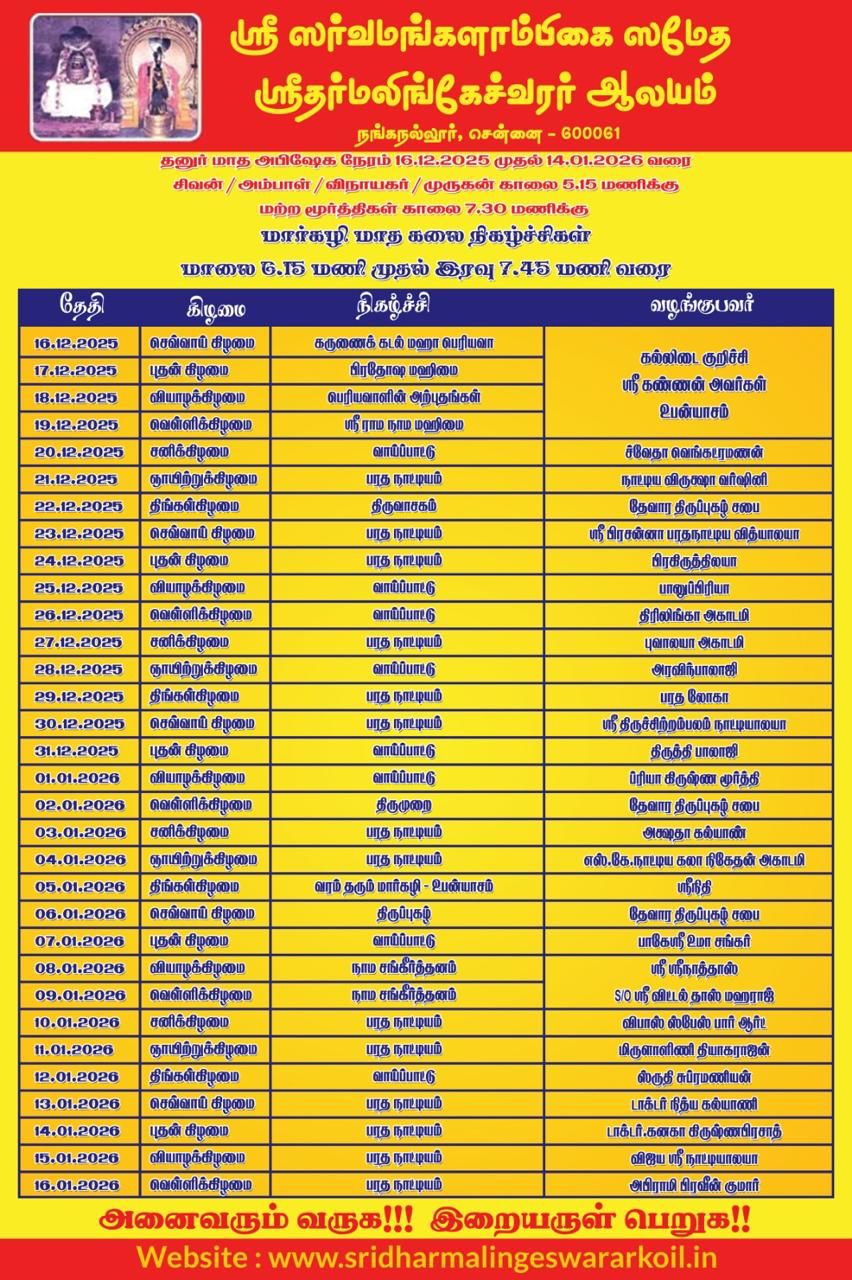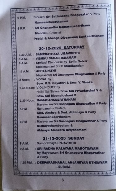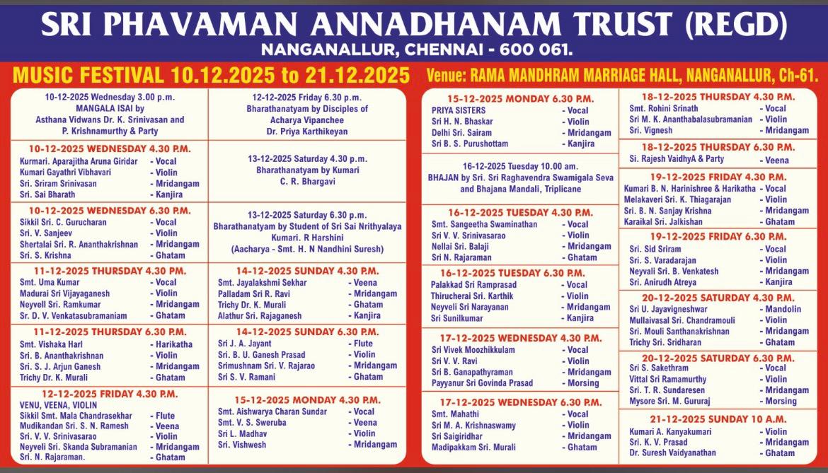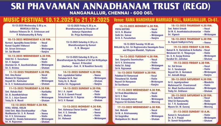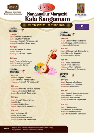 Margazhi Carnatic Music Events Schedule