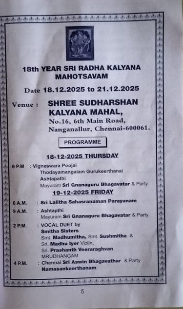 Sri Sudharshana Kalyana Mahal - Sri Radha Kalyana Mahotsavam