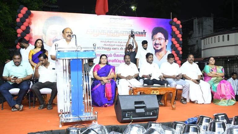 A prize distribution ceremony for the Kolam Competition was held at TNGO Colony Main Road, where MSME Minister TM Anbarasan attended the event and distributed prizes to the winners. The programme saw enthusiastic participation from residents of the area.