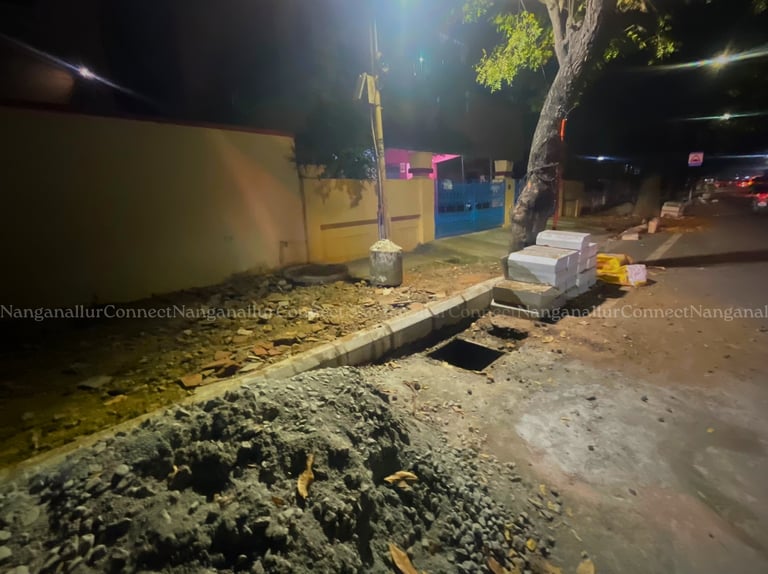 Nanganallur: Work has begun on the installation of kerbs along select main roads in Nanganallur. While the project is currently limited to a few stretches, it marks a step towards improving road structure and pedestrian safety in the area.