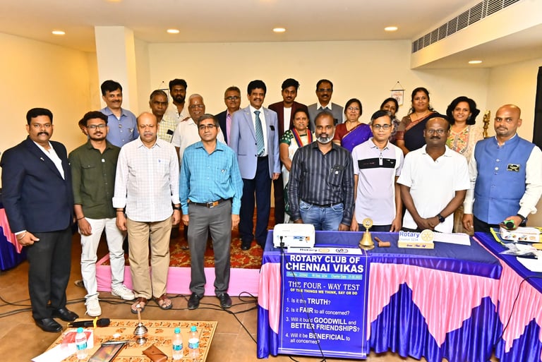 What sets Rotary Club of Chennai Vikas apart is not only its service projects but also its vibrant fellowship. The club provides a platform for members to exchange ideas, grow professionally, and strengthen bonds of friendship, making it both a place of service and a family of changemakers.