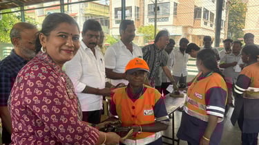 As part of the initiative, footwear was distributed to 109 women sanitation workers of the Greater Chennai Corporation, acknowledging their tireless efforts in maintaining public hygiene and ensuring a cleaner and healthier city. The initiative aimed at supporting these frontline workers by providing them with comfortable and protective footwear to assist them in their daily duties.